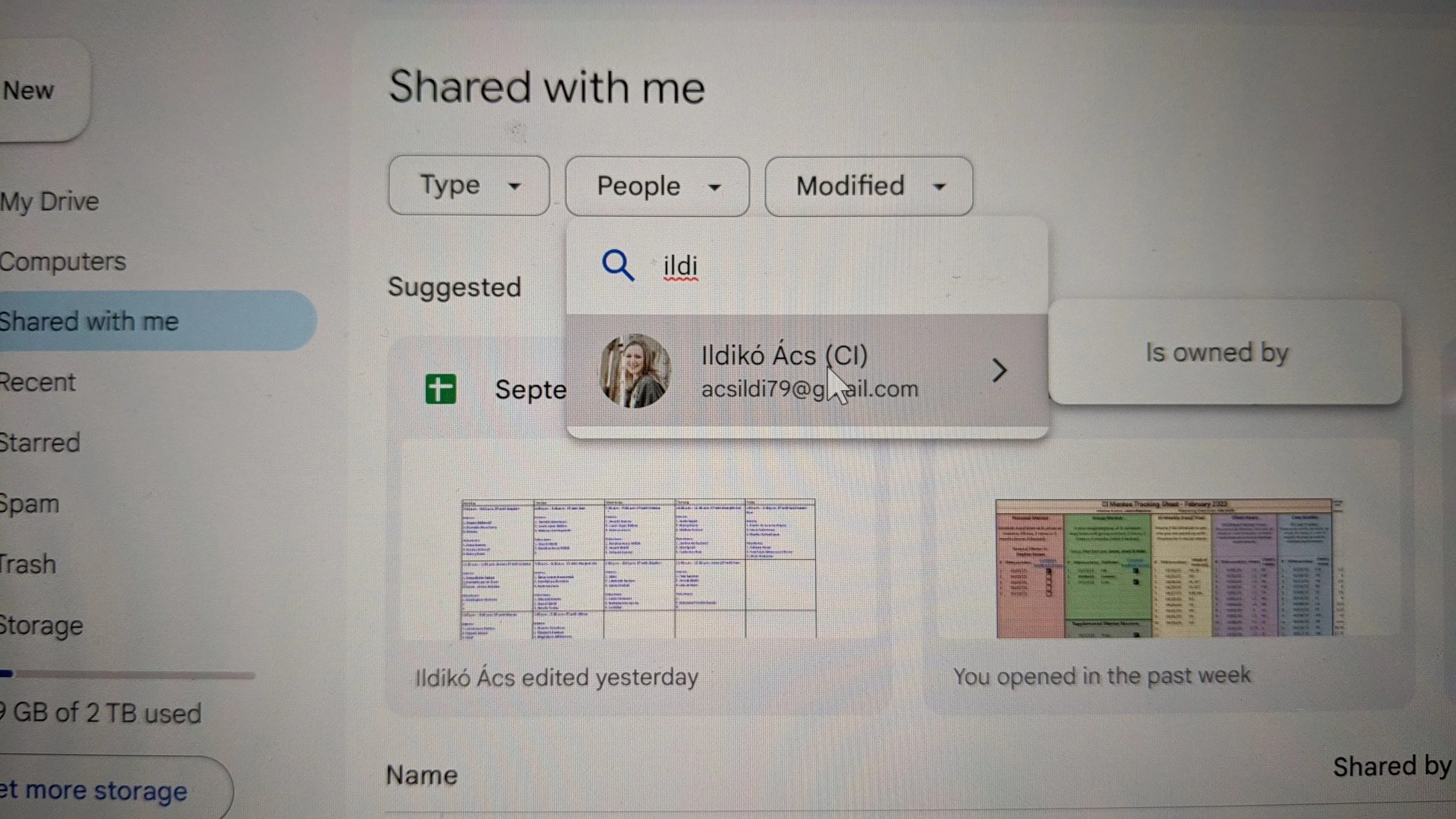 Don’t click on “Is owned by”, just click on Ildi’s name / email as you see highlighted here, as Ildi has also shared documents “owned” by Michelle and others.